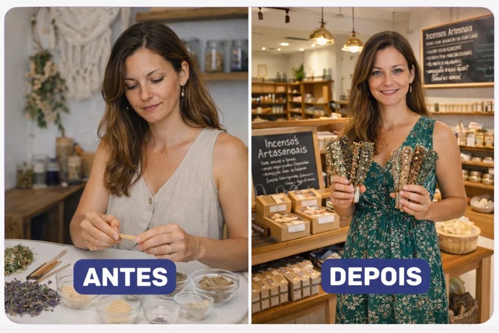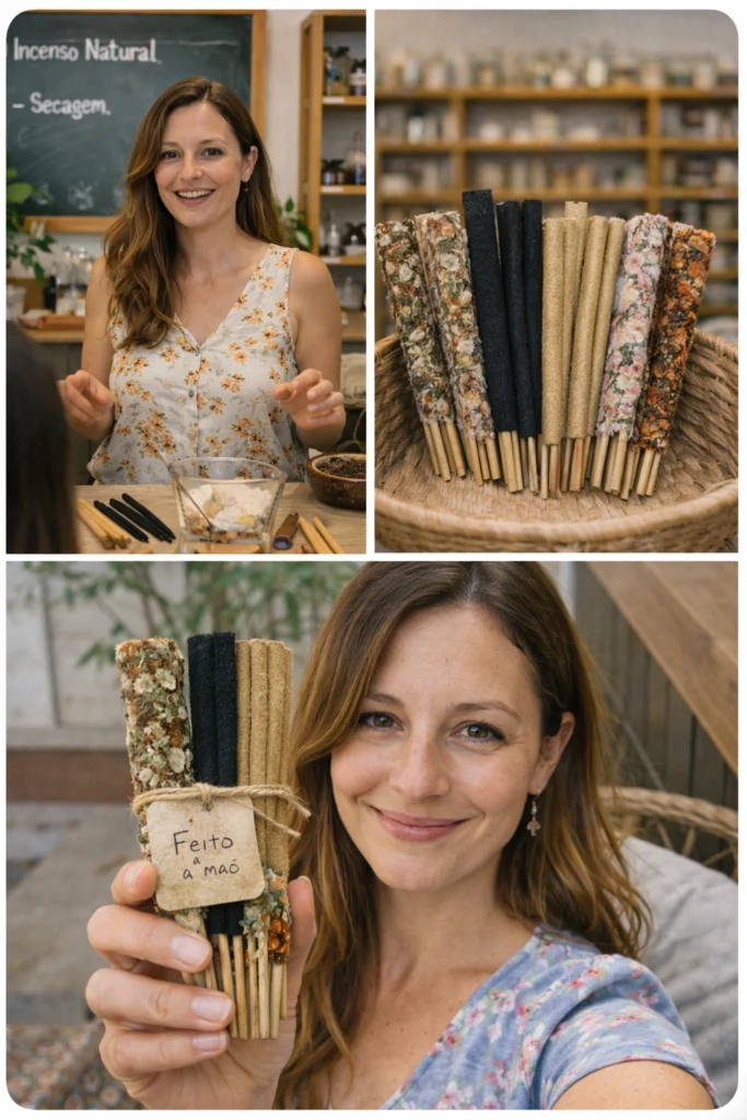 Na pandemia, precisou recomeçar do zero no digital. Organizou o processo, simplificou a produção e passou a vender incensos artesanais para diferentes regiões do Brasil, criando uma renda real com algo feito à mão.