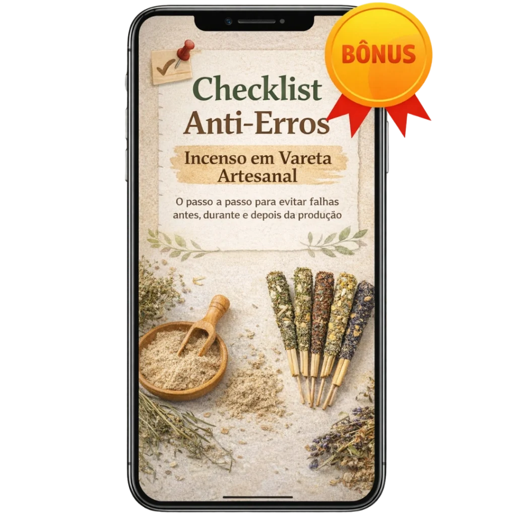 Hoje, Ana Barcellos é referência em incenso artesanal de vareta e ensina um método direto e acessível para que outras mulheres consigam, em poucos meses, o que levou muito tempo de tentativa e erro para aprender sozinha.